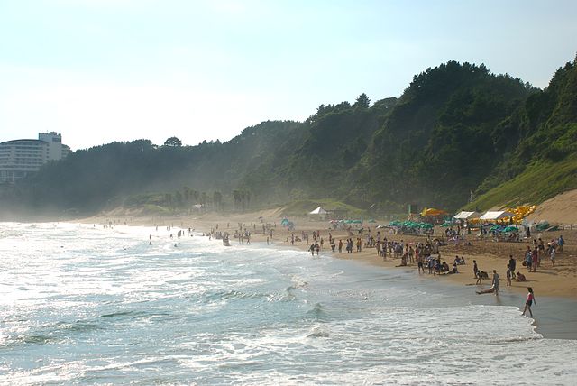 Photo of the beach at the Jungmun Tourism Complex in Jeju-do, South Korea courtesy of Wikimedia Commons user Yoo Chung, CC-BY-SA-3.0.