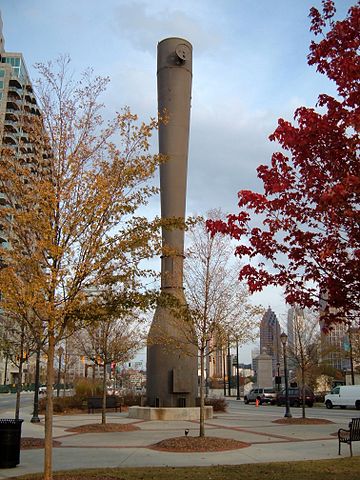 Statue in central park serves as monument of the massive brownfield redevelopment in the Atlantic Station area of Atlanta, Georgia.